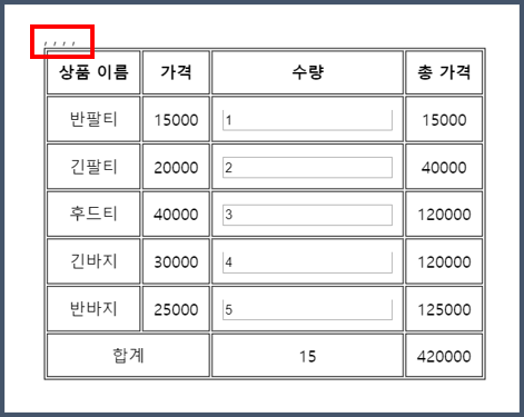 <th>총 가격</th>